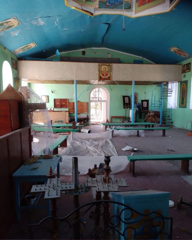 “Агресори з терористичної російської федерації “с загадочной русской душой” знову вгатили керованими авіабомбами по селу Зміївка в Бериславському районі. Вчергове завдали серйозних пошкодждень і руйнувань нашому храму на честь Святого Архангела Михаїла”, - повідомила Херсонська єпархія ПЦУ.Як видно з фото, що їх опублікувала єпархія, церква постраждала суттєво.