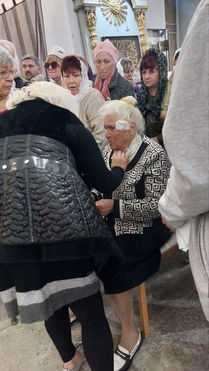 Поранені під час ворожого обстрілу віряни у храмі Різдва Богородиці. Херсон, 08.10.2023 р. Фото: соцмережі.
