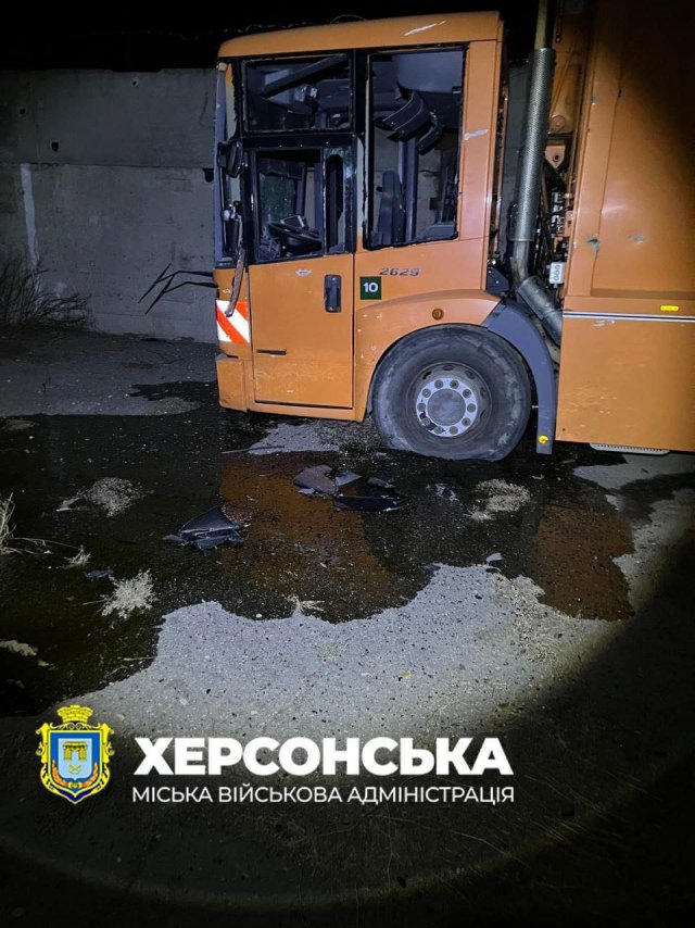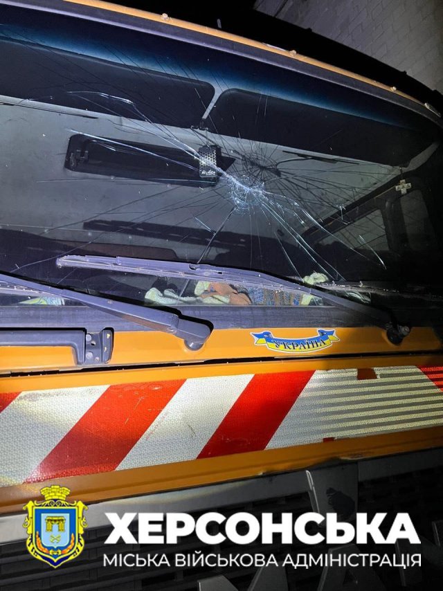 Вчора ввечері російські терористи обстріляли одне з комунальних підприємств Херсона. Про це повідомив Роман Мрочко у Facebook.Пошкоджена техніка і елементи адміністративної будівлі. На щастя, люди не постраждали.