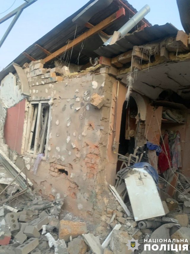 Окупанти скинули вибухівку з дрона на Берислав. Внаслідок удару постраждав 58-річний чоловік, якого доправили до лікарні з вибуховою та черепно-мозковою травмами, контузією, уламковими пораненнями тулуба, рук та ніг. Місто обстрілювали і з артилерії, пошкоджено приватний будинок.