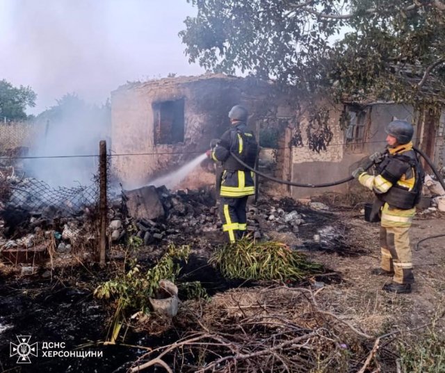 Чергові ворожі обстріли по населенню Херсонщини.Протягом доби виникло 7 пожеж у житлі через прильоти. Горіли переважно житлові будинки та господарчі споруди. Про це повідомляє пресслужба ДСНС Херсонської області.Кілька разів вогнеборцям доводилось відходити в безпечні місця через повторні обстріли, а потім повертатись до гасіння.Всі пожежі ліквідовано.