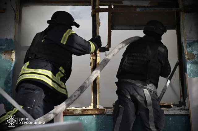 Сьогодні, серед білого дня, коли люди саме активно пересуваються містом, окупанти запустили керовані авіабомби по Херсону! Від влучання КАБ виникла пожежа на території недіючого підприємства, також було зруйновано житловий будинок, пошкоджено два навчальні заклади.Про це звітує пресслужба ДСНС Херсонської області.Рятувальники залучались до гасіння пожежі, проводили обстеження місць прильотів, також допомогли людям відчинити двері, що заблокувало вибуховою хвилею.
