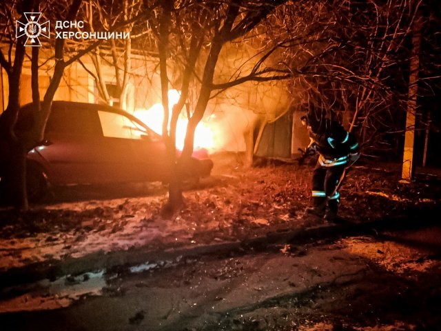 Цієї ночі, через влучання ворожих боєприпасів, загорівся легковий автомобіль в одному з районів міста Херсон.Про це інформує пресслужба ДСНС Херсонської області.На місце події оперативно прибув пожежно-рятувальний підрозділ та загасив займання.