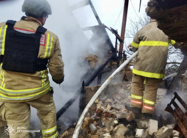 Вчора армія рф знову атакувала селище Станіслав. Ворожий снаряд влучив на територію приватного домоволодіння. Загорілось дві господарчі сопоруди.Про це повідомила пресслужба ДСНС Херсонської області.Пожежу вдалось ліквідувати.