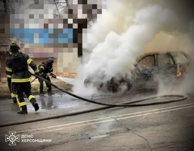 Окупанти продовжують терор мирного населення!Про це інформує пресслужба ДСНС Херсонської області.Ворожі безпілотники з самого ранку атакують мирне населення. В одному з районів міста БПЛА влучив у автомобіль, що рухався вулицею. Автівку миттю охопило полум’я.Рятувальники оперативно прибули за викликом та загасили пожежу. Інформація щодо постраждалих не надходила.