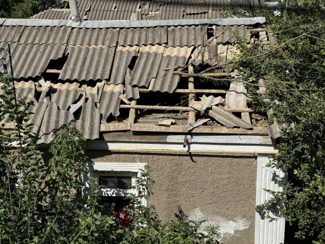 "Тут влучання були і недалеко від мене. А я через дорогу живу. У мене велика хата, але навіть вона дрижала. Вирвало двоє дверей, вікно вибите, дах пошкоджений. На другому поверсі стіна вся побита уламками", — каже Ольга.