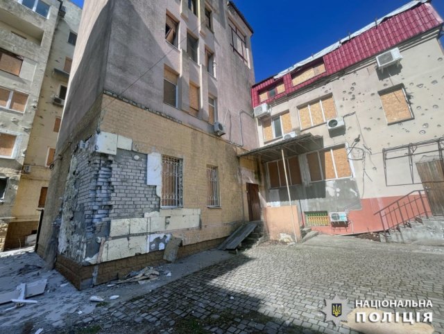 «Вночі FPV-дронами російські військові атакували Берислав. Внаслідок удару постраждали п’ятеро поліцейських, у них діагностували контузії та уламкові поранення, загрози їх життю немає. Знищено службовий автомобіль поліції», - інформує поліція.