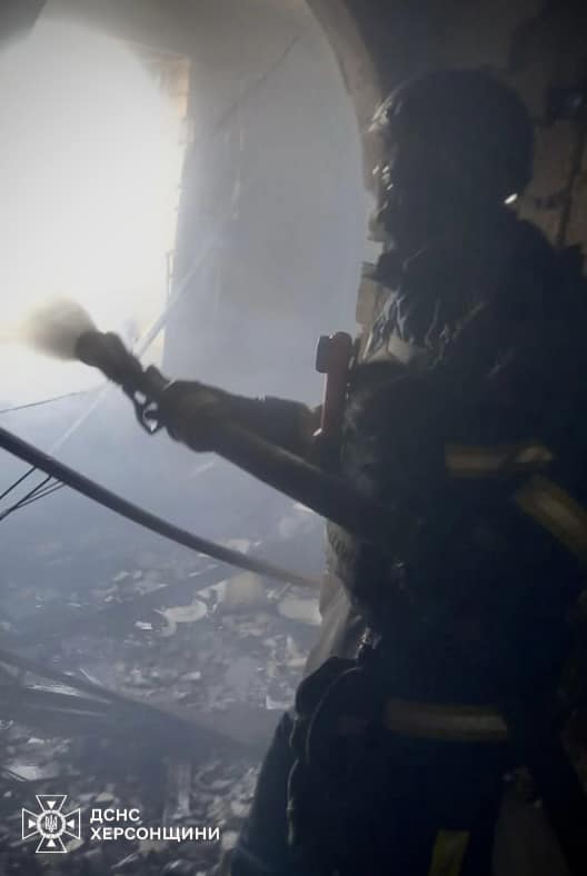 Бериславські рятувальники під час гасіння пожежі в багатоквартирному будинку, що виникла через ворожий обстріл, врятували двох жінокПро це повідомляє Головне управління ДСНС України у Херсонській області."Сьогодні вдень бериславські рятувальники виїхали за викликом про пожежу в квартирі на п’ятому поверсі багатоквартирного будинку. За попередніми даними в квартиру влучив ворожий снаряд.
