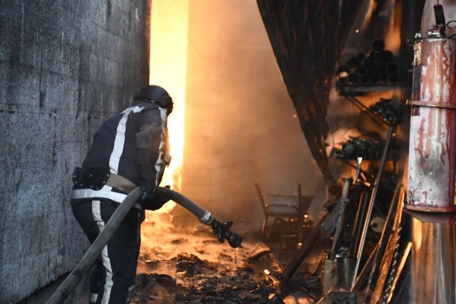 Горіли складські приміщення, виставкові зали та господарчі споруди. На пожежі працювали 15 рятувальників і три одиниці техніки.