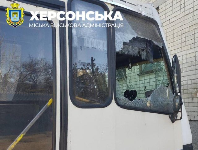 "Під ворожий обстріл у Дніпровському районі Херсона потрапив маршрутний автобус, який належить приватному підприємству-перевізнику. Люди, на щастя, не травмувалися. Громадський транспорт пошкоджено", - йдеться у дописі.