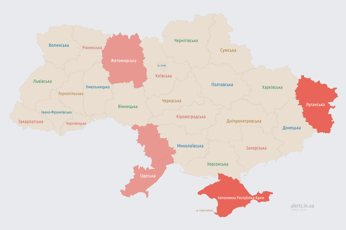 Додамо, що вночі 23 червня в низці областей України знову оголошували повітряну тривогу. Також було оголошено повітряну небезпеку в Київській області.