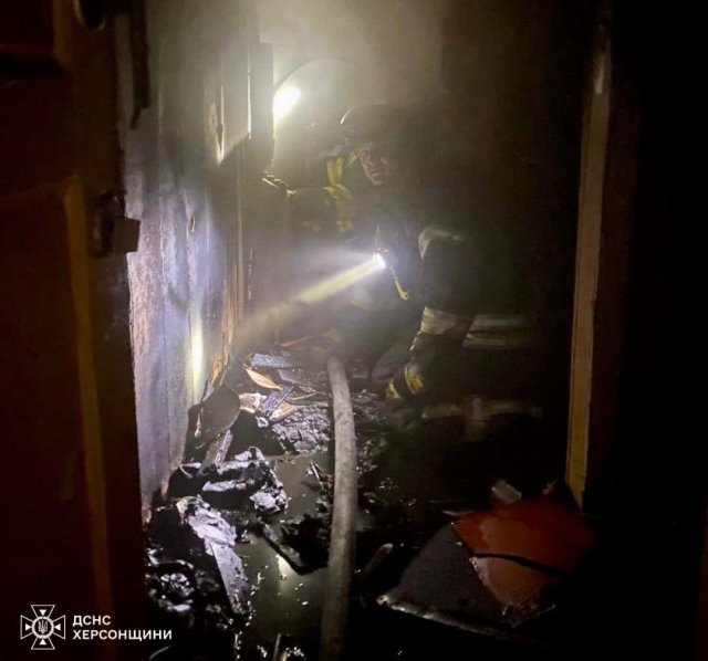 Вчора вночі на номер служби 101 м.Херсон надійшло повідомлення про загоряння квартири в багатоквартирному будинку по вул. Миру.Про це повідомляє у Фейсбук Головне управління ДСНС України у Херсонській області.По прибуттю рятувальників полум’я охопило квартиру на другому поверсі, а весь під’їзд був затягнутий густим димом. В квартирах на верхніх поверхах знаходились люди.