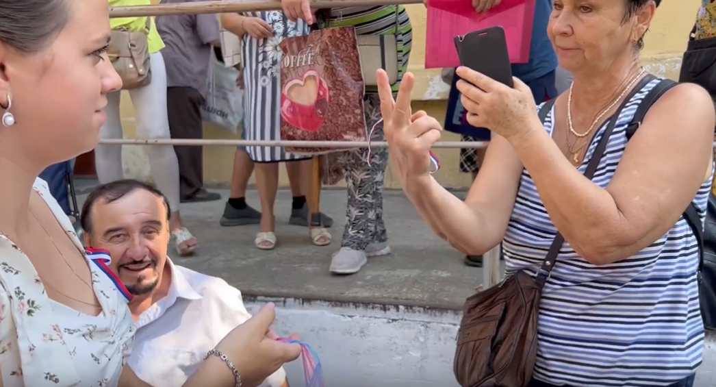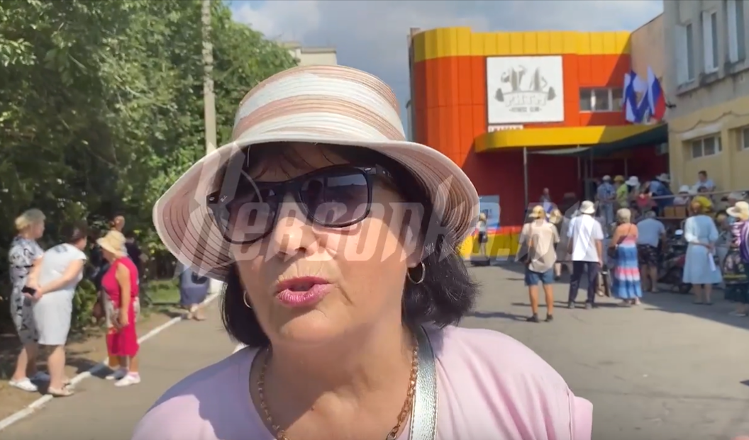 На фоні співаків пропагандисти зняли великий монолог жительки міста, яка розхвалює життя в окупації.«Мы очень счастливы! <...> Это моей молодости песня! Как я могу быть равнодушной? Нам запрещали эти песни — на 8 тысяч штрафовали за то, что я русскую песню слушаю», - каже вона на камеру.
