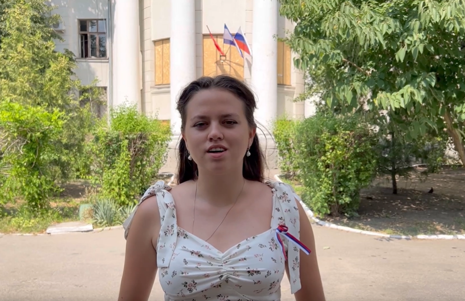 Також в іншому відео намалювалася ще одна колаборантка — «общественный деятель Херсонской области Анна Полонская». Вона на камеру теж виголосила проросійський спіч, а потім роздавала новокаховчанам стрічки із триколором.