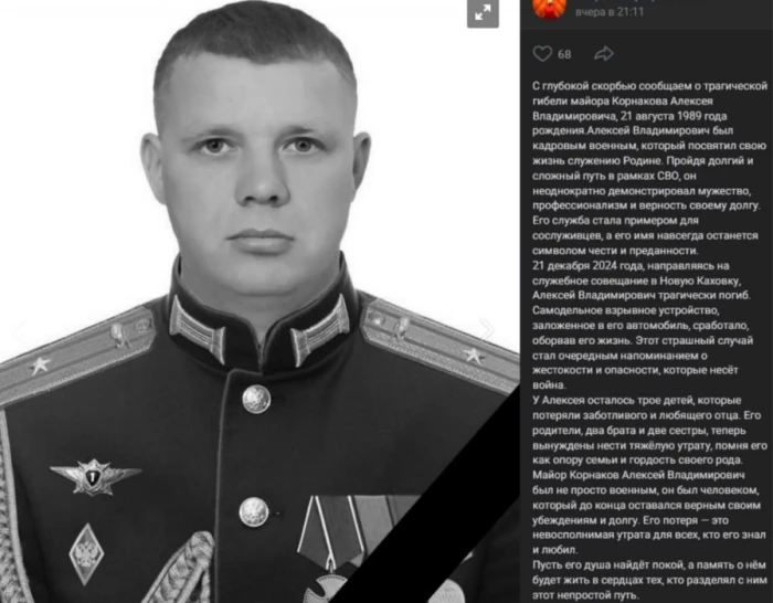 Примітно, що інформація про ліквідацію Корнакова різниться – одні проросійські джерела вказують на те, що його підірвали 21 грудня 2024 року, інші – що Корнаков загинув “під час виконання бойового завдання 4 грудня 2024 року на території України”.35-річний Корнаков був кадровим військовим.