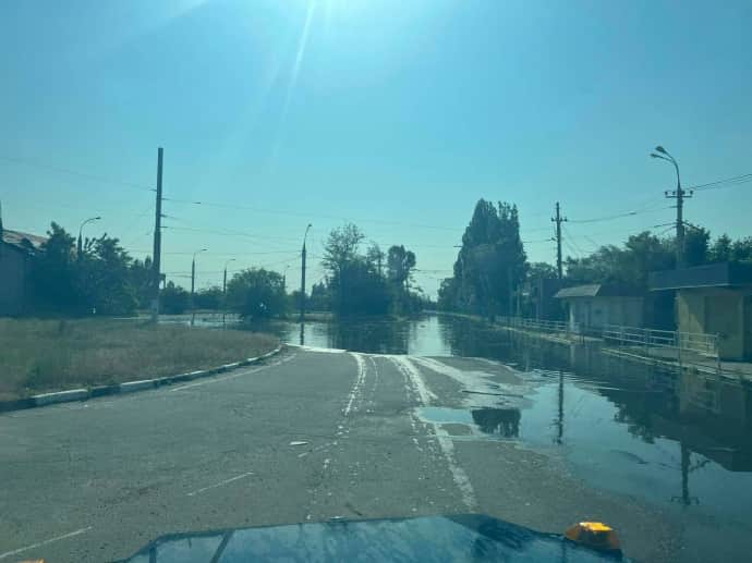 - У мікрорайоні Корабел у Херсоні вимкнули електропостачання у зв’язку з підтопленням, яке виникло в результаті підриву Каховської ГЕС окупантами.