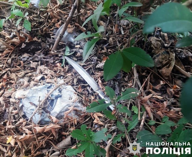 Також під час відпрацювання прилеглої до місця події території поліцейські виявили у траві ніж, якого зловмисник позбувся, коли тікав.