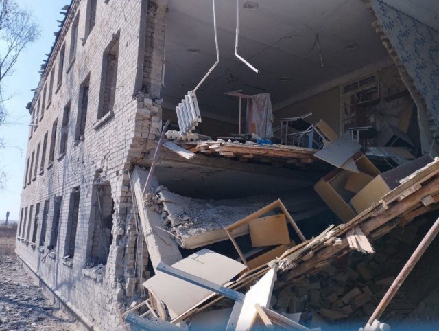 Будівля зазнала суттєвих руйнувань – пошкоджено стіну, дах, вибито вікна.