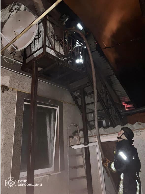 Вчора ввечері армія рф атакувала передмістя Херсону. Ворожий снаряд влучи у житловий будинок, виникла пожежа.