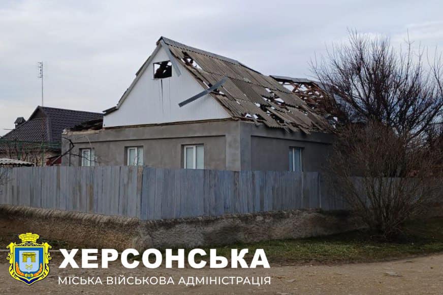Як передає Укрінформ, відповідні фото у Фейсбуці оприлюднив начальник Херсонської МВА Роман Мрочко.«Російські терористи вкотре обстріляли Зеленівку», - йдеться у повідомленні.Як зазначається, один із ворожих снарядів влучив у приватний будинок. Наголошується, що люди дивом вціліли.