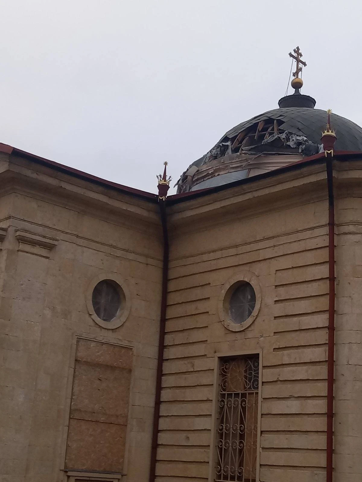 Свято-Катеринівський собор. Фото зі сторінки собору у фейсбуціУ ніч з 22 на 23 грудня 2025 року Свято-Катеринівський собор у Херсоні потрапив під обстріл.Про це повідомили на сторінці собору у фейсбуці.Внаслідок атаки пошкоджений центральний купол храму."Незабаром можливо вже піде сніг, а це ще більше зруйнує наш собор, який є памʼятником архітектури нашого міста", – зазначається у дописі.