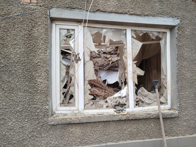 Внаслідок “прильоту” пошкоджено житловий будинок – потрощено покрівлю, стіни, вибито шибки.