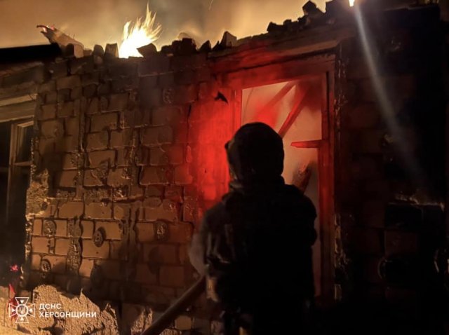 Вночі ворог вкотре атакував житлові квартали Херсона.В одному з мікрорайонів було зруйновано житловий будинок, на місці влучання виникла пожежа.