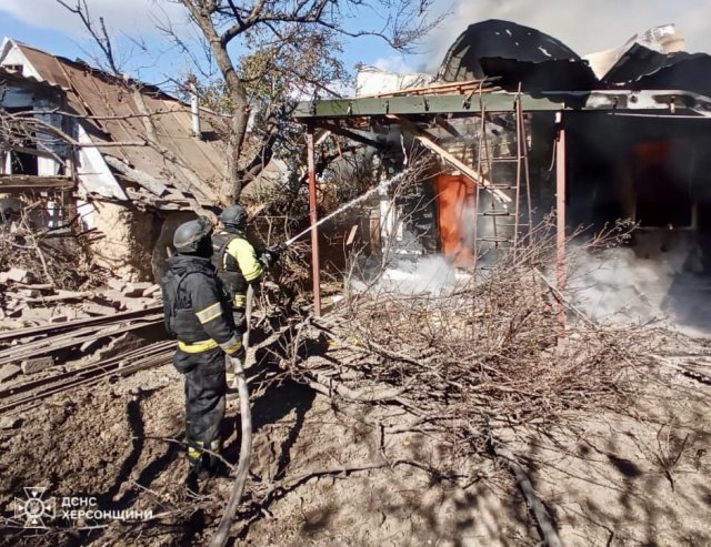 Упродовж доби пожежно-рятувальні підрозділи 12 разів виїжджали на ліквідацію пожеж, що виникли через ворожі обстріли.Про це повідомляє пресслужба ДСНС Херсонської області.Горіло 5 житлових будинків, 2 господарчі споруди, гаражні приміщення, квартира в багатоповерхівці та сухостій на відкритих територіях. До гасіння залучались пожежно-рятувальні підрозділи ГУ ДСНС Херсонщини та місцева пожежна охорона с.