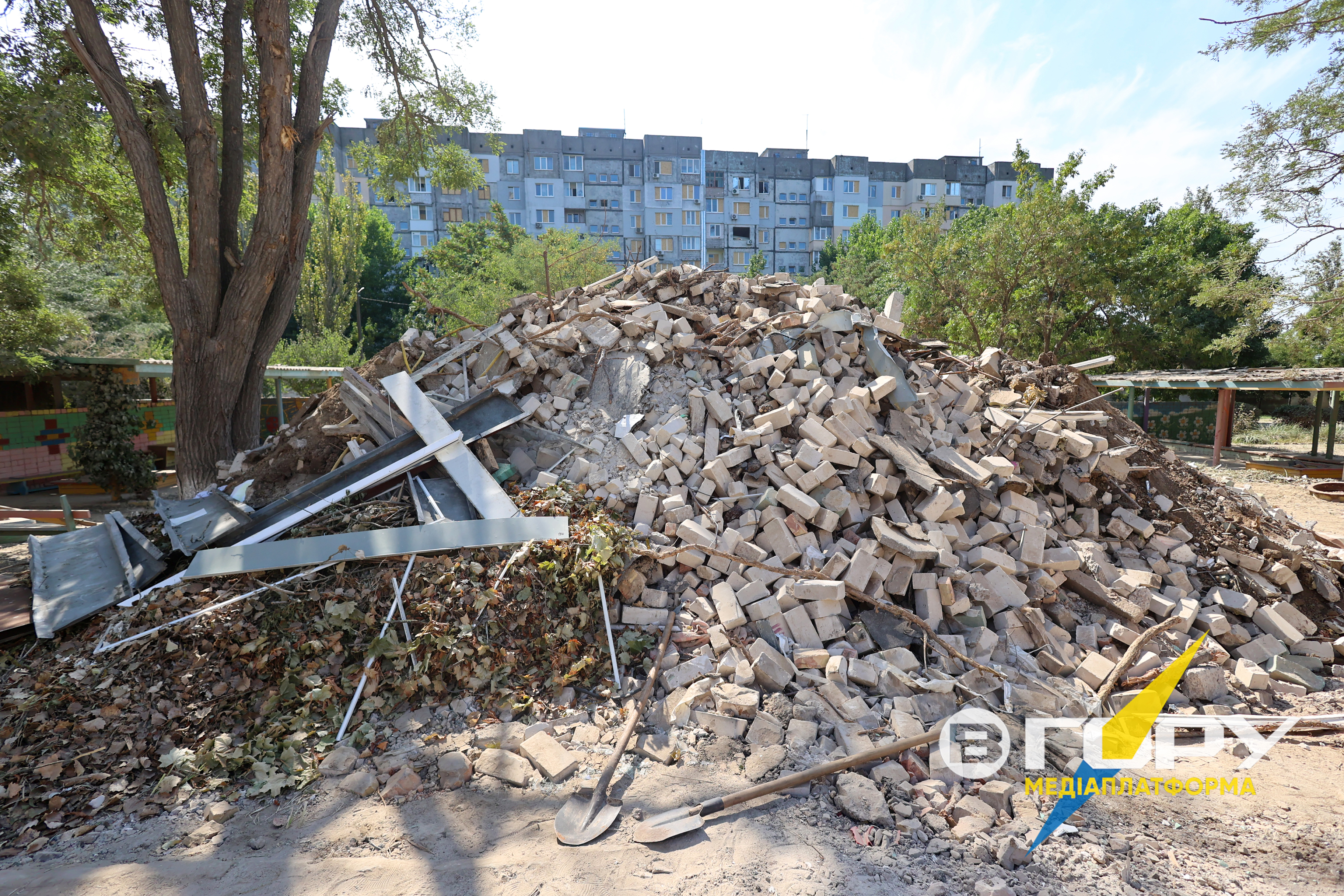 Нагадуємо, 23 серпня, у День Державного прапора близько четвертої ранку російські військові скинули дві керовані авіабомби на дитсадок та житлові будинки в Херсоні.На місці "прильоту" побував фотокореспондент Медіаплатформи “Вгору” Олександр Корняков та зробив кілька фото наслідків обстрілу армії РФ. На фото можна побачити, що на місці, де раніше лунав дитячий сміх, зараз стоїть понівечена будівля в уламках.