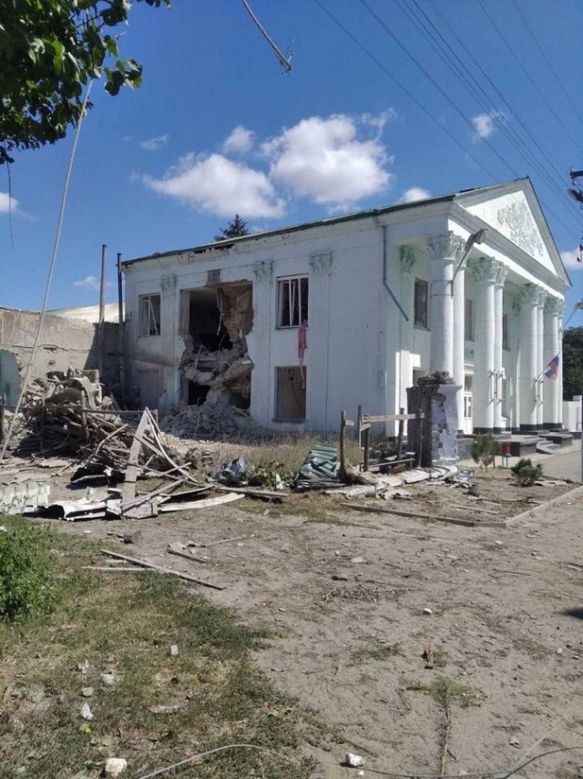 Наразі у мережі з'явилися фото й відео бою біля Козачих Лагерів. Зокрема на фото видно, що під час вогневого зіткнення суттєво постраждала будівля місцевого будинку культури.