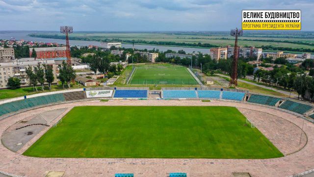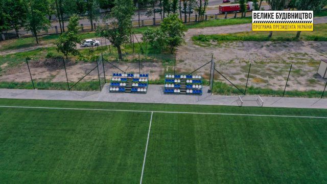 На фото - тренировочное поле стадиона "Кристалл" в Херсоне, реконструированное в рамках программы Президента Украины "Большая стройка". Реализации этого проекту позволила создать комфортные и безопасные условия для проведения тренировок по футболу.На тренировочном поле устроено искусственное покрытие, систему поверхностного водоотвода и установлена система освещения. Также футбольное поле имеет пандус для доступа маломобильных слоев населения.