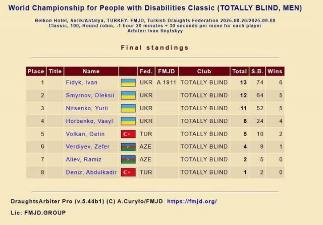 Херсонський шашкіст Юрій Ніценко виборов чергове призове місце на чемпіонаті світу з "шашок-100" серед людей з інвалідністю.Про це повідомила Херсонська ОВА.Майстер спорту України міжнародного класу та вихованець Херсонського регіонального центру "Інваспорт" посів третє місце у класичній грі серед спортсменів з порушеннями зору.Раніше Юрій вже відзначився "сріблом" у двох дисциплінах — rapid та бліц.