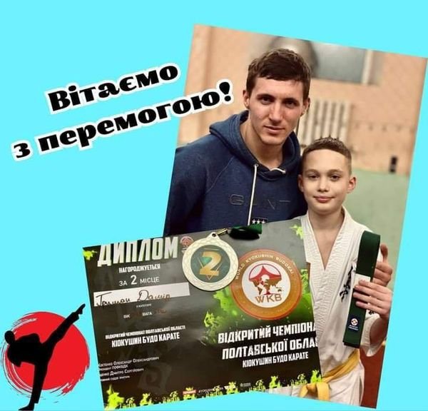 Вихованка ДЮСШ "Спартак" Херсонської міської ради Людмила Диденко перемогла у Відкритому чемпіонаті Полтавської області з кіокушин БуДо карате у розділі "Куміте", який відбувся минулого тижня.Про це повідомив Роман Мрочко у Facebook.А учень Херсонської гімназії №6 Дамір Гришан здобув на цьому ж чемпіонаті ІІ місце.Окрім того, інші юні херсонські спортсмени Максим Каспривський, Дар'я Костик, Максим Дрибнич вибороли ІV місця.