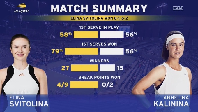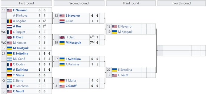 У наступному раунді Еліна змагатиметься проти діючої чемпіонки Коко Гофф (№3 WTA).