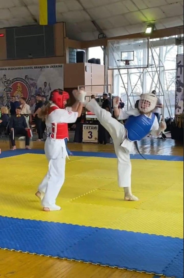 Анастасія виступала в розділі куміте. Підготував спортсменку керівник гуртка Сергій Дерій.