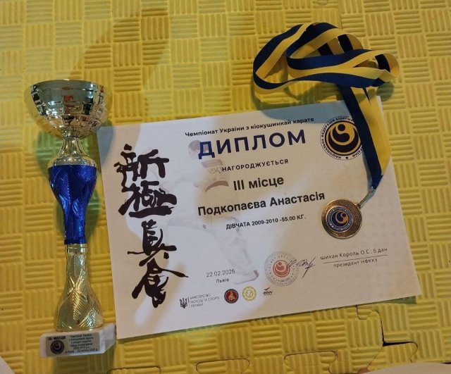 Вихованка Херсонського дитячо-юнацького клубу фізичної підготовки №5 Анастасія Подкопаєва здобула бронзову нагороду на чемпіонаті України з кіокушинкай карате.