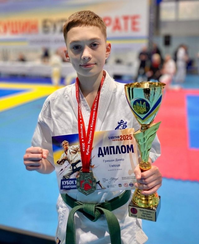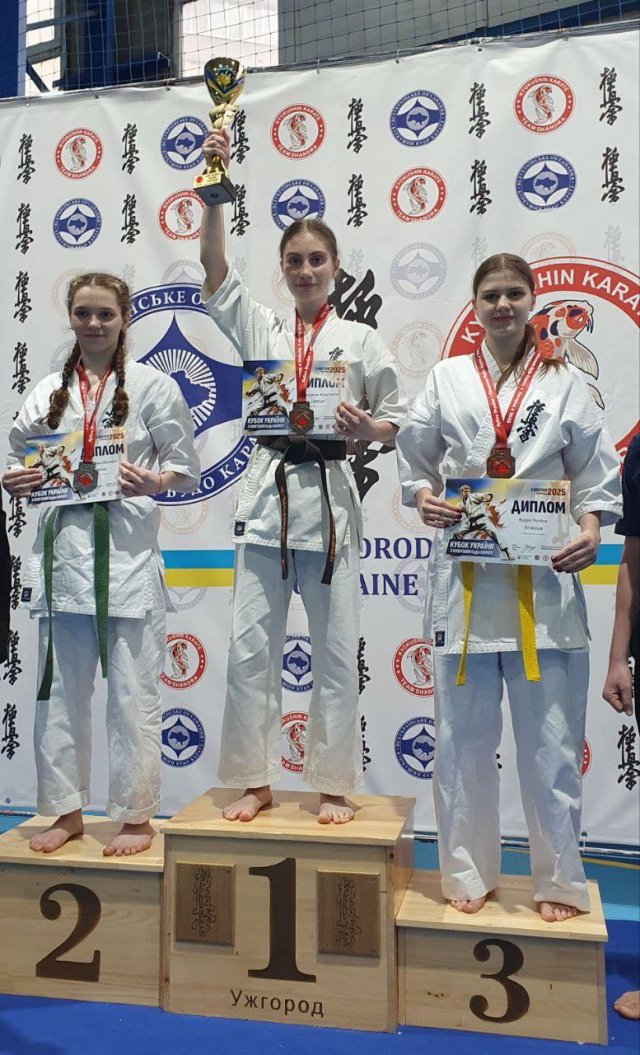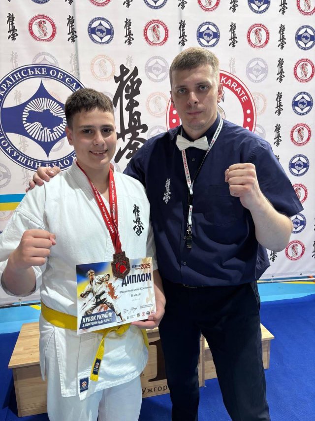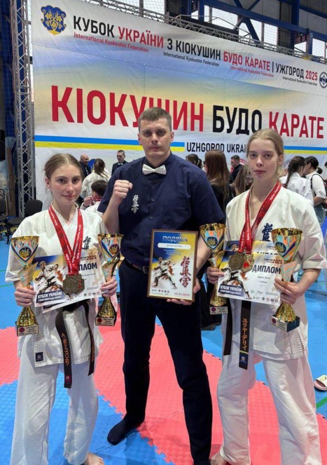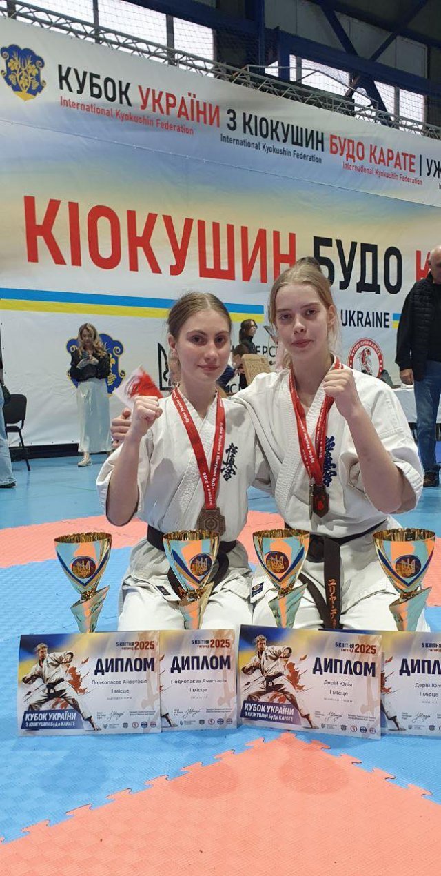 Вихованці Херсонського дитячо-юнацького клубу фізичної підготовки №5 привезли вісім нагород із Кубку України з Кіокушин БуДо карате, який відбувся в Ужгороді у Центрі олімпійської підготовки.ПРо це повідомив керівник Херсонської МВа Роман Мрочко.У розділі "ката" перші місця здобули Юлія Дерій і Анастасія Подкопаєва, третє місце — Костянтин Михайловський.