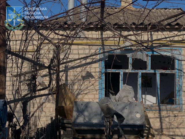У місті Берислав троє цивільних дістали поранень різного ступеню. Двоє чоловіків та жінка постраждали через вибух ворожого дрону, який влучив у приватний будинок.